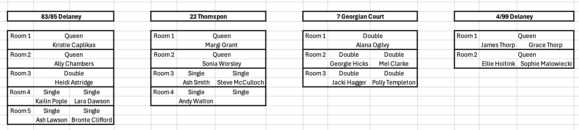 Rooms are located at AirBnb or Stayz accomodation at the addresses below. Information on accessing your accomodation will be sent on the day of check in.